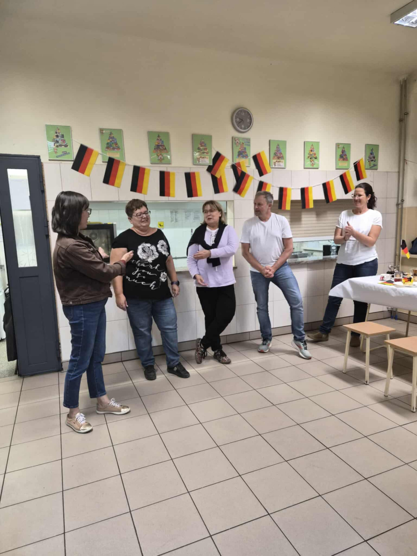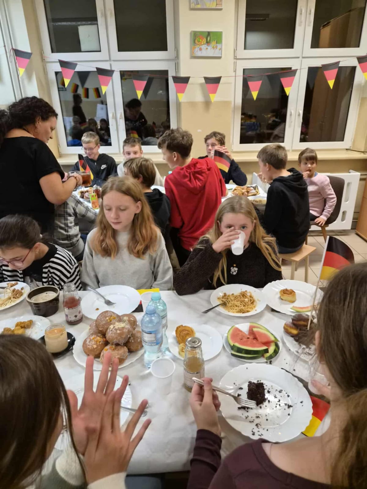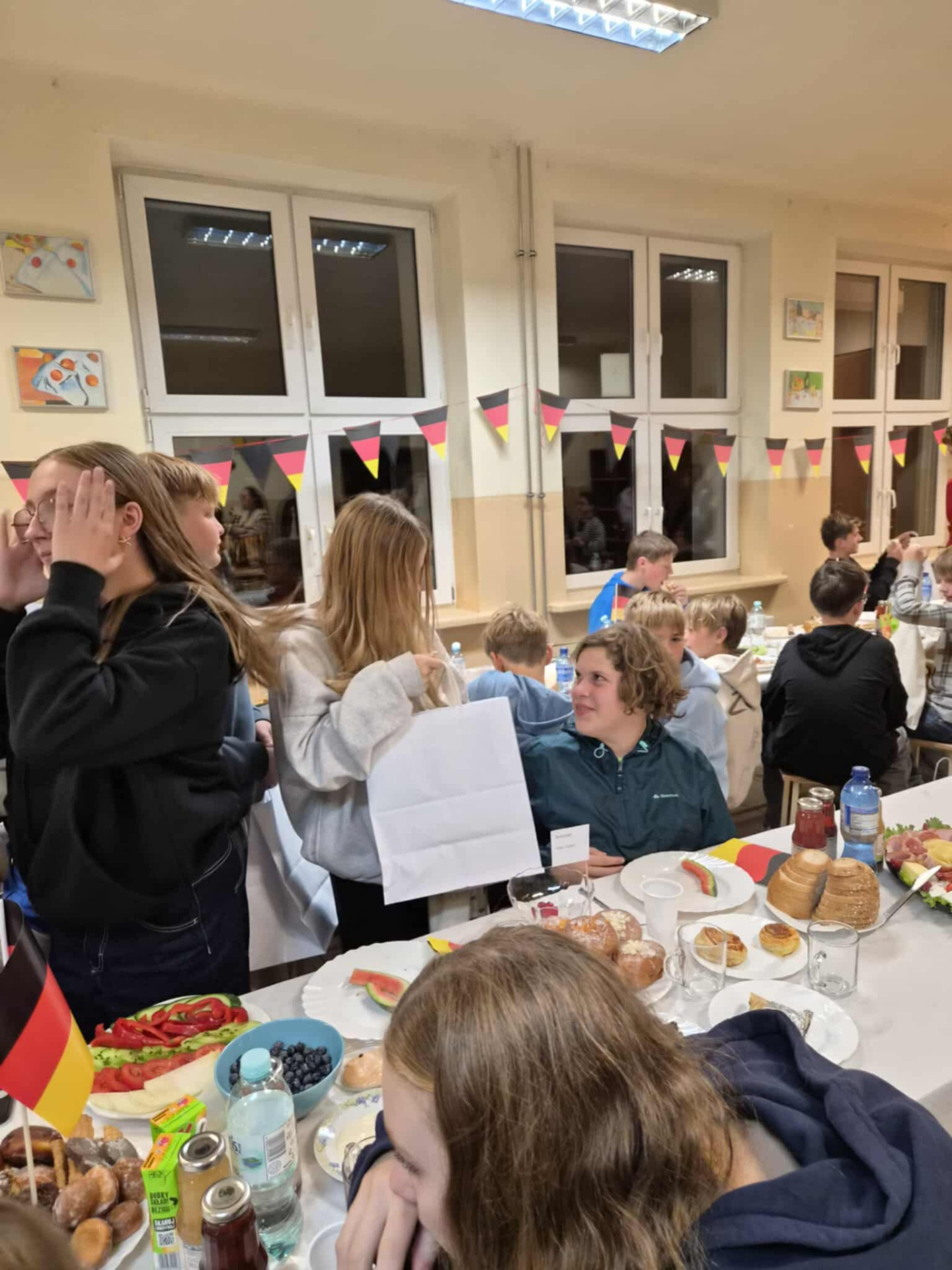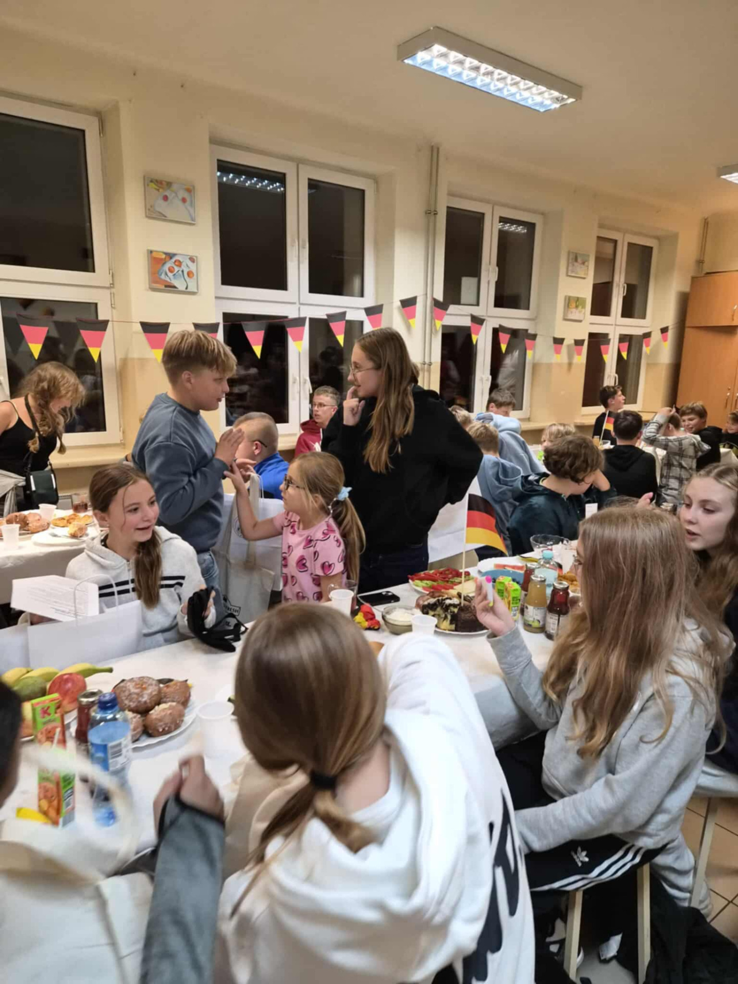 Piątek, 26 września, stał się okazją dla uczniów klas 7a i 7b do promowania nauki języków obcych oraz propagowanie zalet różnorodności językowej. Podczas gdy koledzy i koleżanki z klas siódmych pojechali odebrać gości ze szkoły partnerskiej i spędzić z nimi dwa dni w Krakowie i Bochni, pozostała grupa uczniów dekorowała hall naszej Jedynki. Do akcji dołączyli rodzice przygotowując wykwintną kolację powitalną dla uczestników polsko-niemieckiego projektu "Spotkania z przeszłością". Zarówno wystrój stołówki, hallu, jak i przepyszne potrawy wzbudziły uznanie naszych gości! Ogromne podziękowania dla siódmoklasistów i ich rodziców!