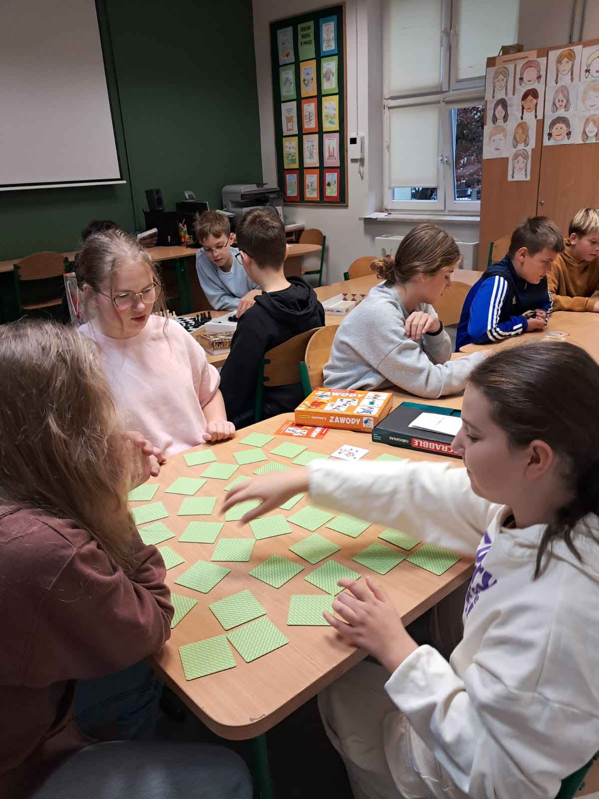 W czwartek 9 października Samorząd Uczniowski zorganizował w naszej szkole dzień gier planszowych. Każdy mógł przynieść z domu swoją ulubioną grę i zagrać w nią z kolegami i koleżankami w klasie lub na korytarzu szkolnym podczas przerw . Była to wspaniała okazja do edukowania, integrowania i grania w gry planszowe. Z dużym zaangażowaniem graliśmy, ćwicząc zdrową rywalizację czyli umiejętność wygrywania jak i przegrywania. To był fajny dzień podczas którego uczniowie przekonali się, że istnieje dobra zabawa bez telefonu i komputera, a gry planszowe są dobrym sposobem na spędzanie wolnego czasu.