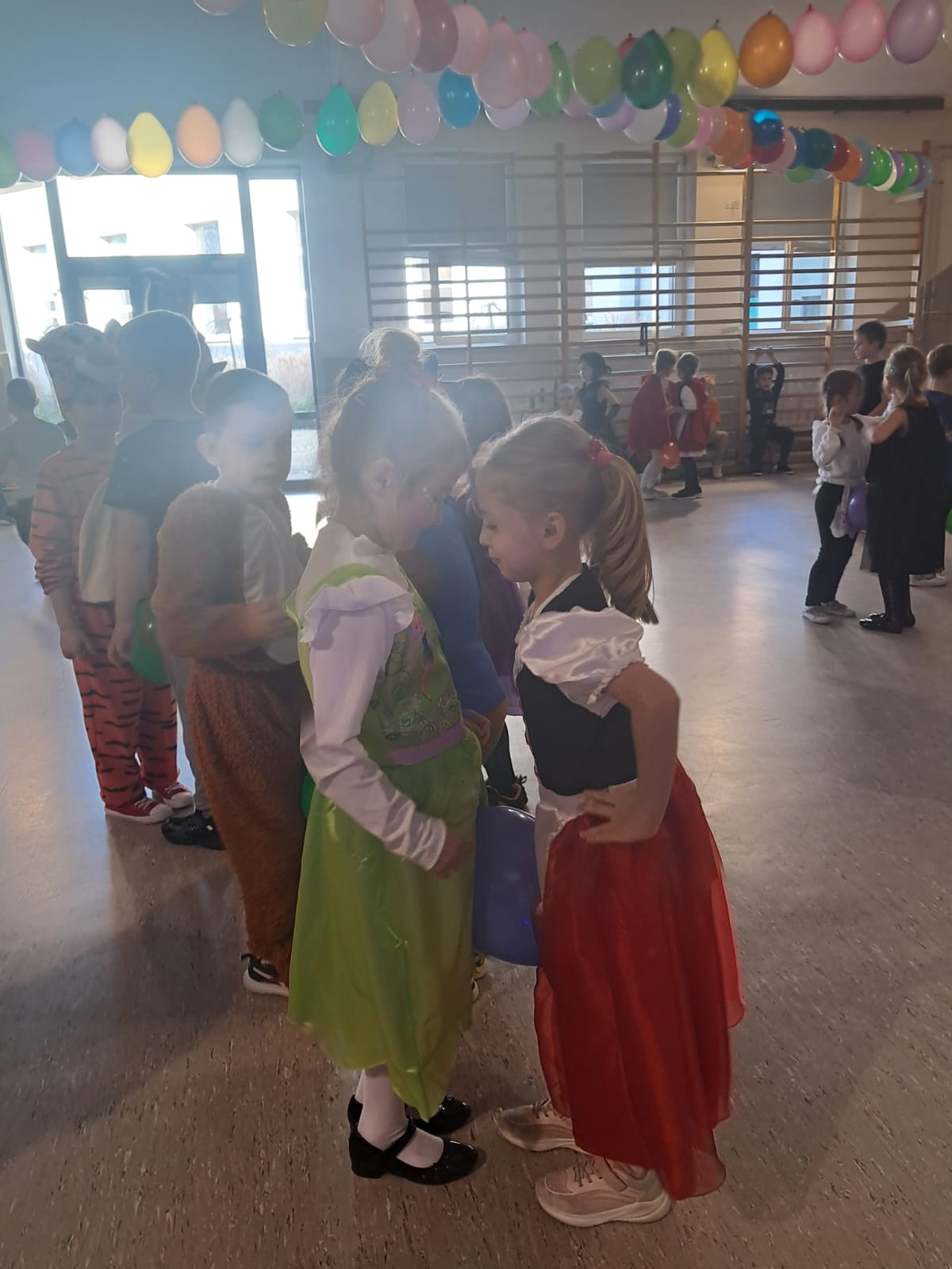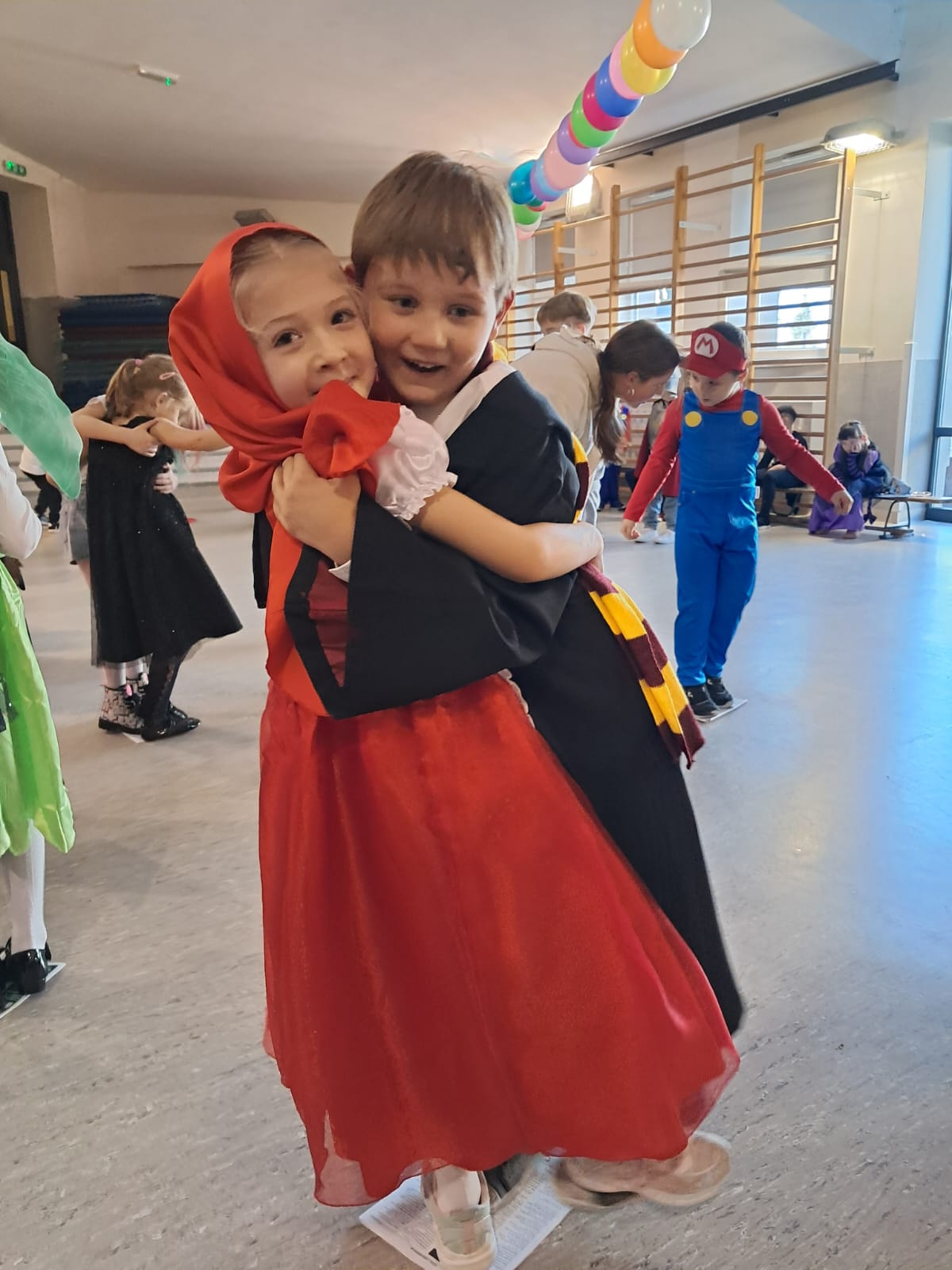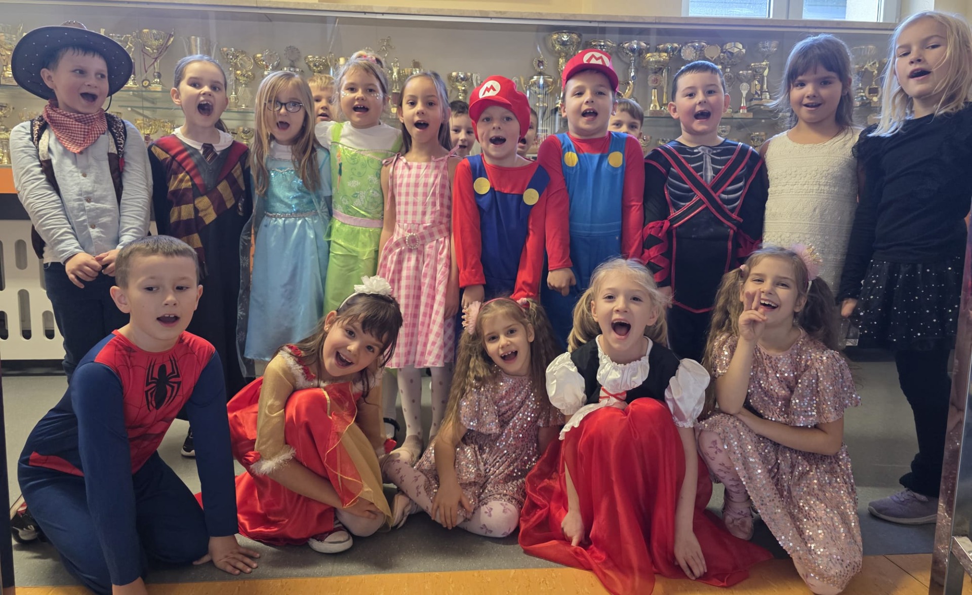 Wspólne tańce, konkursy i zabawy z niespodziankami - takie było integracyjne szaleństwo 6 listopada 2025 roku klas pierwszych, zorganizowane przez Samorząd Uczniowski, który dołożył wszelkich starań, aby ten dzień był wyjątkowy. Podczas balu przenieśliśmy się w bajkowy, niezwykły świat za sprawą barwnych strojów pierwszoklasistów. Młodzi uczniowie bawili się do ulubionych utworów muzycznych oraz chętnie uczestniczyli w konkursach i zabawach przygotowanych przez przedstawicieli Samorządu Uczniowskiego. Wspólne konkursy i tańce zintegrowały wszystkich uczestników balu, a spotkanie na tanecznym parkiecie umożliwiło dzieciom spędzenie czasu w miłej atmosferze. Dziękujemy za dobrą zabawę, spontaniczność i uśmiech. Na koniec każdy uczeń otrzymał słodki upominek.