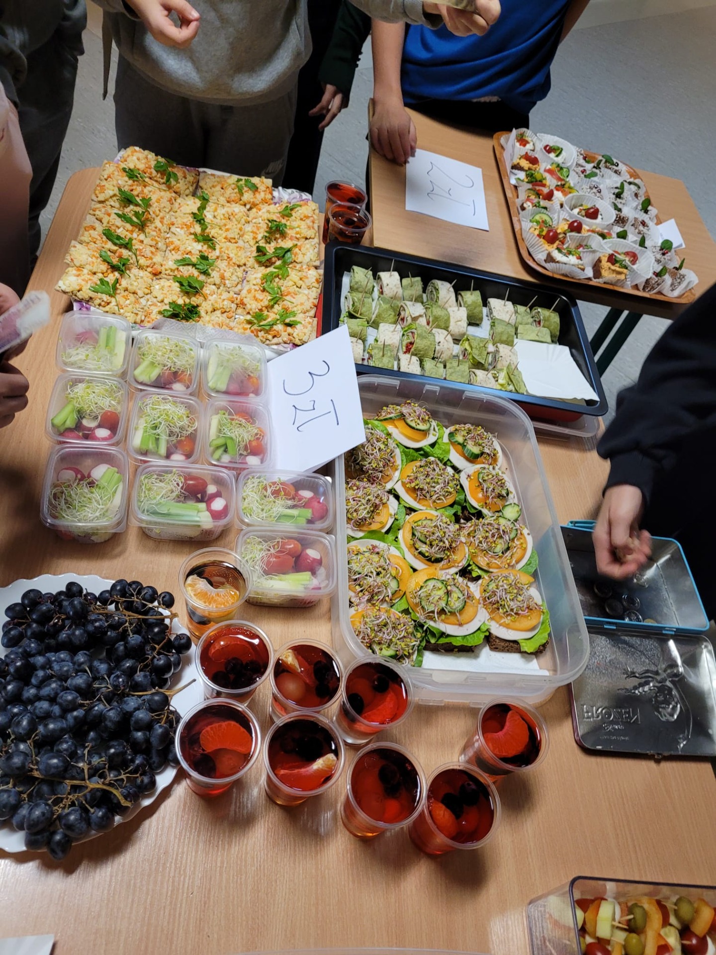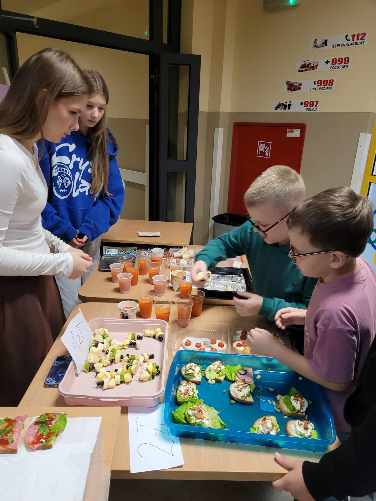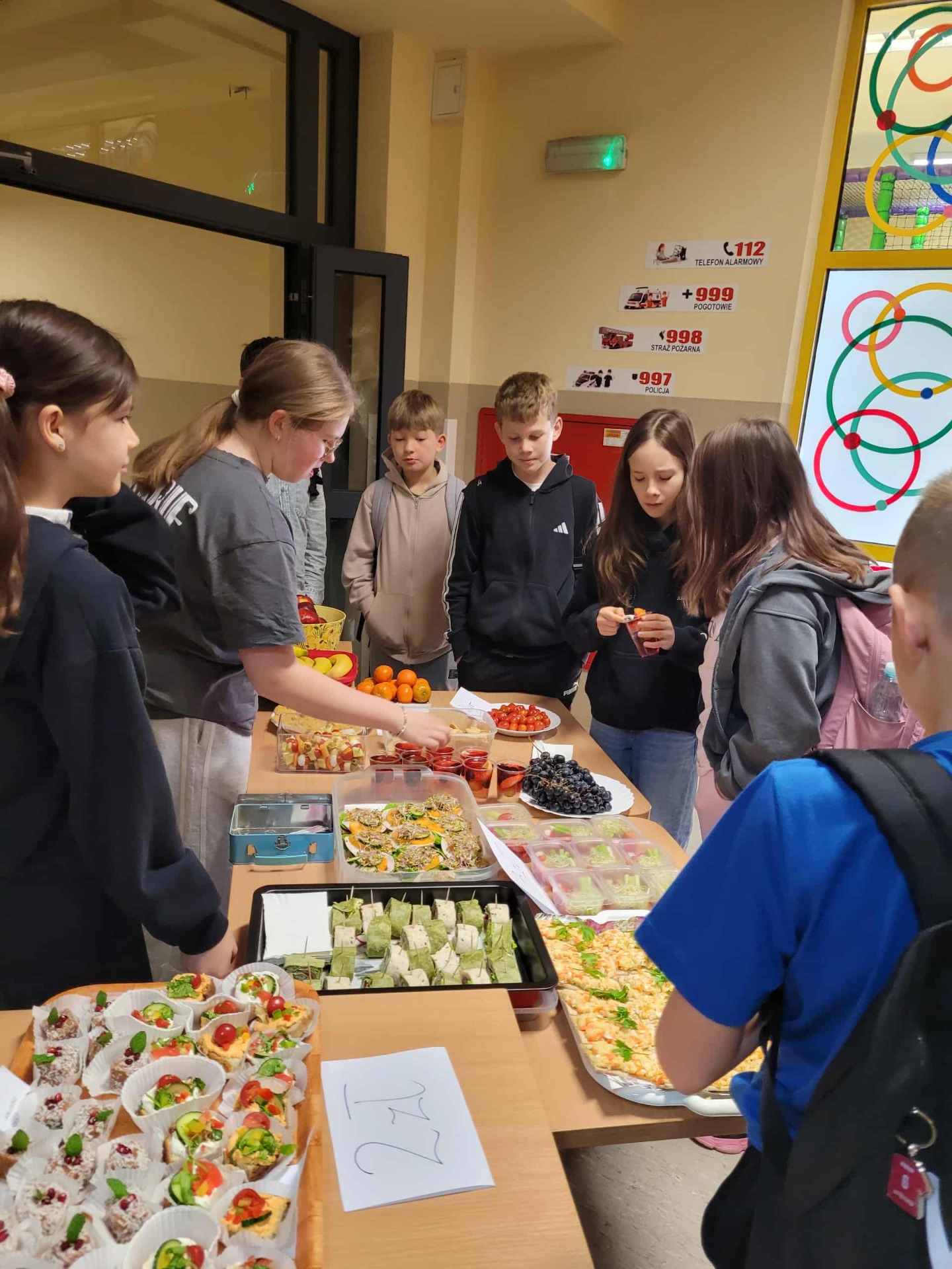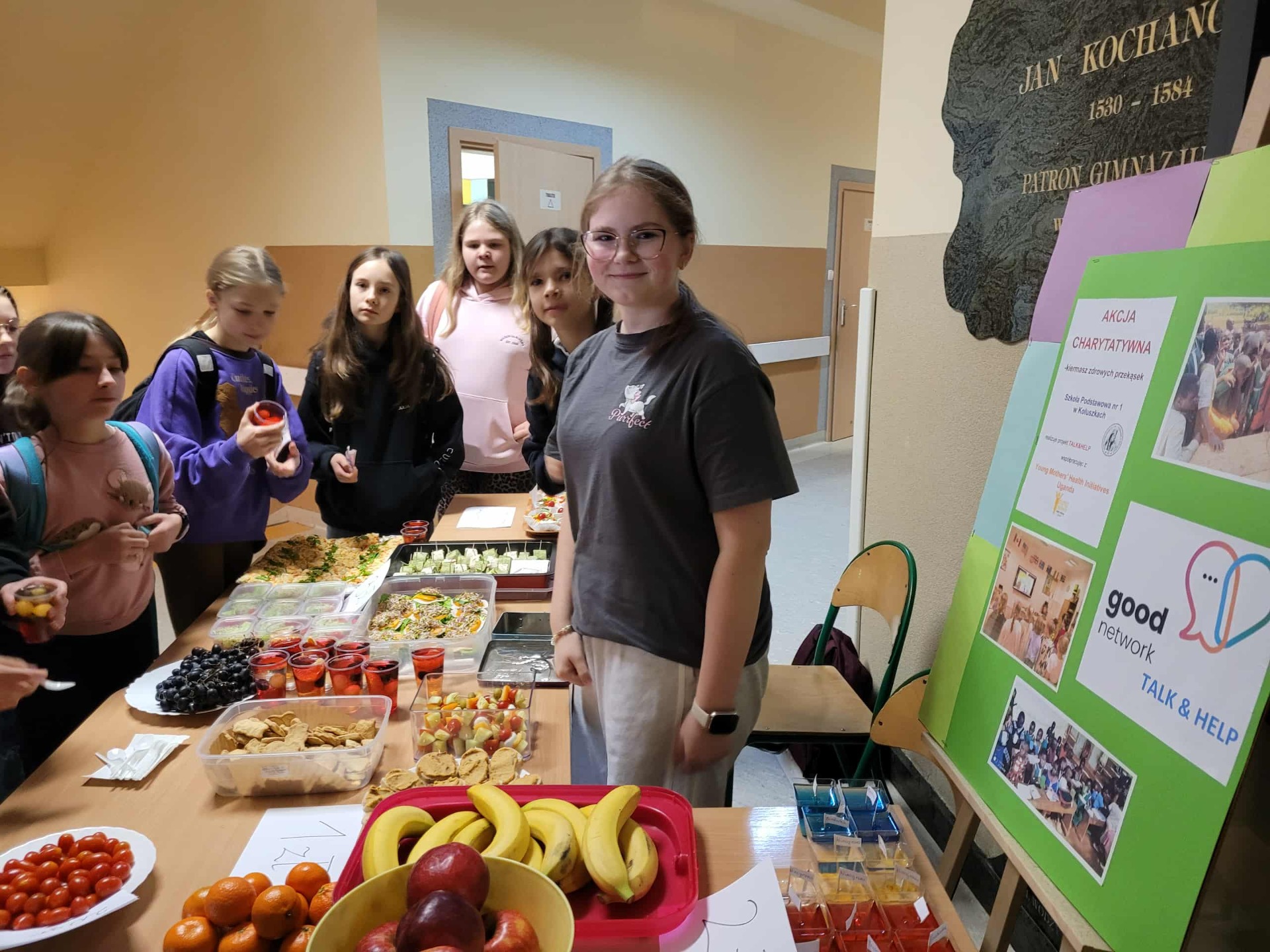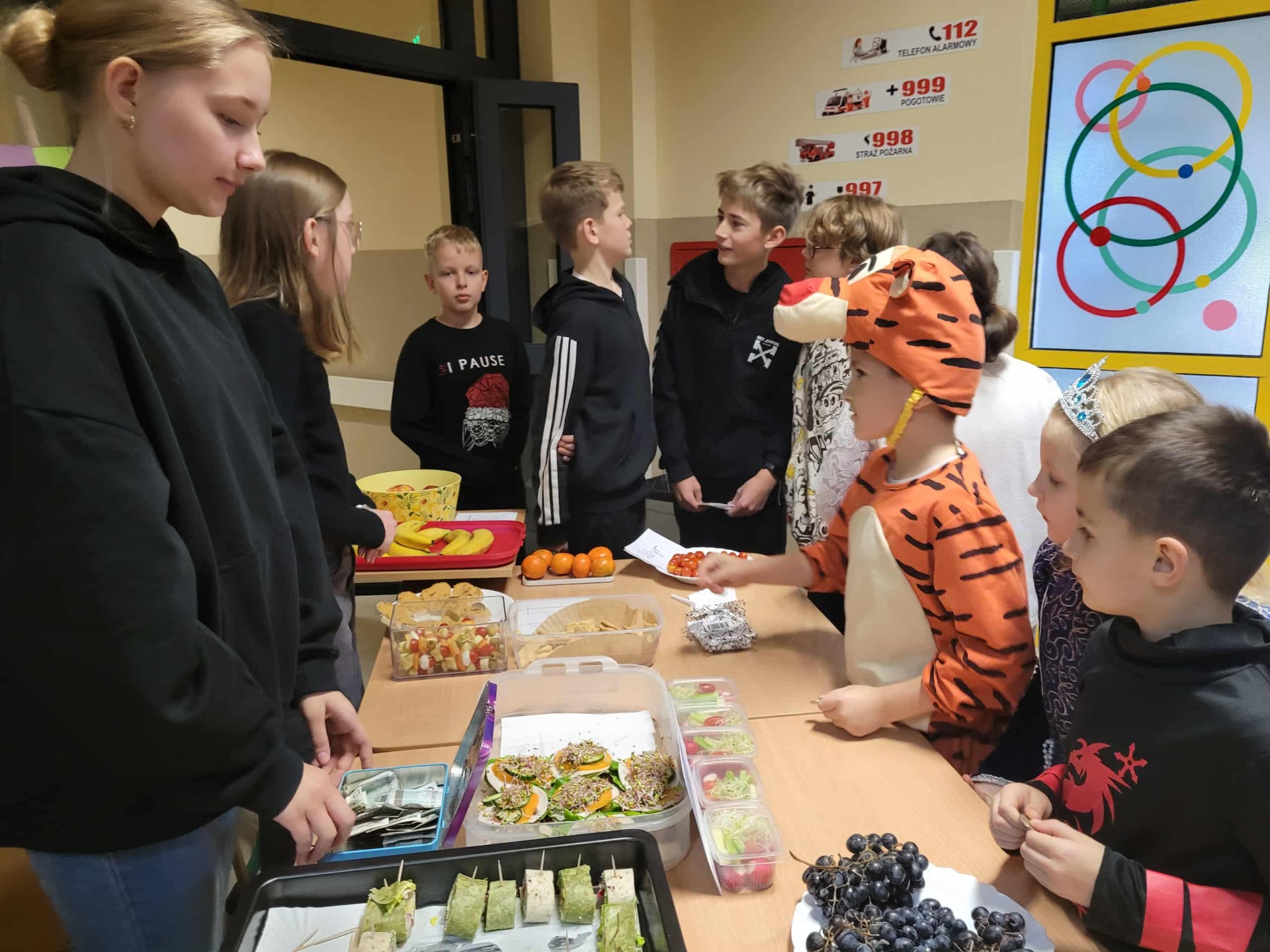 W ramach tegorocznych obchodów związanych z realizacją projektu ”Trzymaj Formę” 6 i 7 listopada 2025r. w naszej szkole obchodziliśmy Dzień Zdrowego Śniadania. W tym roku szkolnym połączyliśmy to z akcją charytatywną na rzecz ubogich afrykańskich dzieci z Ugandy - w ramach realizacji międzynarodowego projektu ROZMAWIASZ –POMAGASZ. W związku z tym w dniach 6 i 7 listopada zorganizowaliśmy kiermasz zdrowych przekąsek. Uczniowie klas 6 i 8 wykazali się ciekawymi pomysłami i przygotowali smaczne, pełnowartościowe potrawy zgodne z zasadami zdrowego żywienia, tj. koreczki warzywne, owocowe, minisałatki, galaretki z owocami, tortille warzywne, kanapki na pełnoziarnistym pieczywie, ciasteczka zbożowe, szaszłyki owocowe i inne. Tego dnia utrwalono dobre nawyki żywieniowe i pokazano, że zdrowe jedzenie może być naprawdę smaczne. Europejski Dzień Zdrowego Jedzenia i Gotowania stawia sobie za cel zachęcanie dzieci do zdrowego odżywiania się, dlatego uczniowie informowani byli o wartościach odżywczych oferowanych dań, przypominano im o dobrych nawykach żywieniowych oraz o systematycznym spożywaniu wartościowych posiłków.