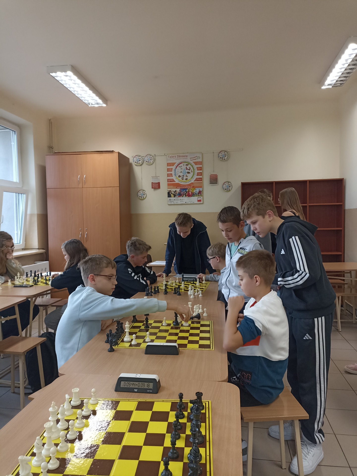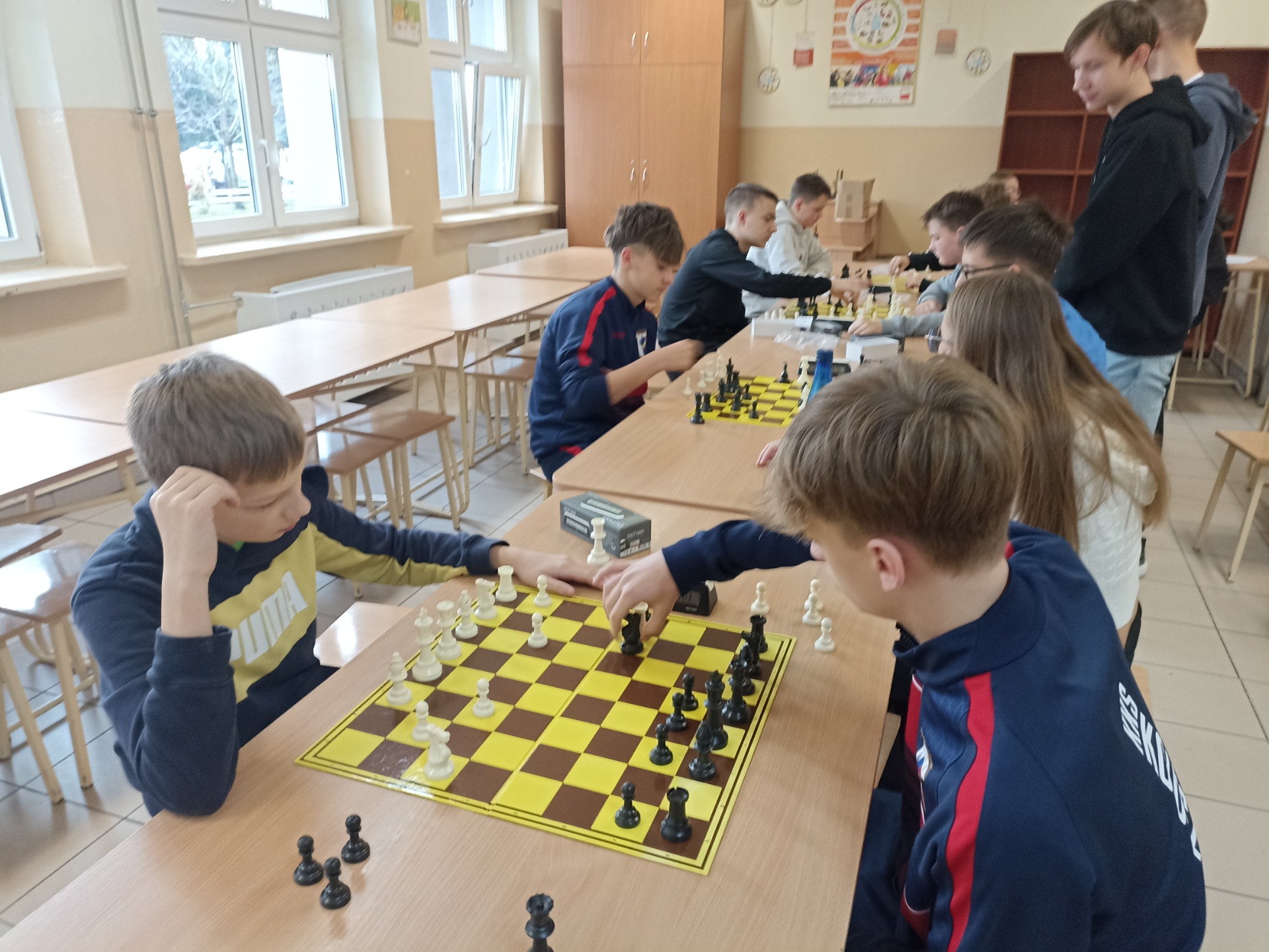 19 i 20 listopada 2025 roku uczniowie klas 1-8 uczestniczyli w Turnieju Szachowym prowadzonym w trzech kategoriach wiekowych. Klasy 1-4 (11osób), klasy 5-6 (5 osób) oraz klasy 7-8 ( 16 osób). Spotkanie było bardzo dobrą okazją do propagowania zdrowej rywalizacji, rozwijania zainteresowań