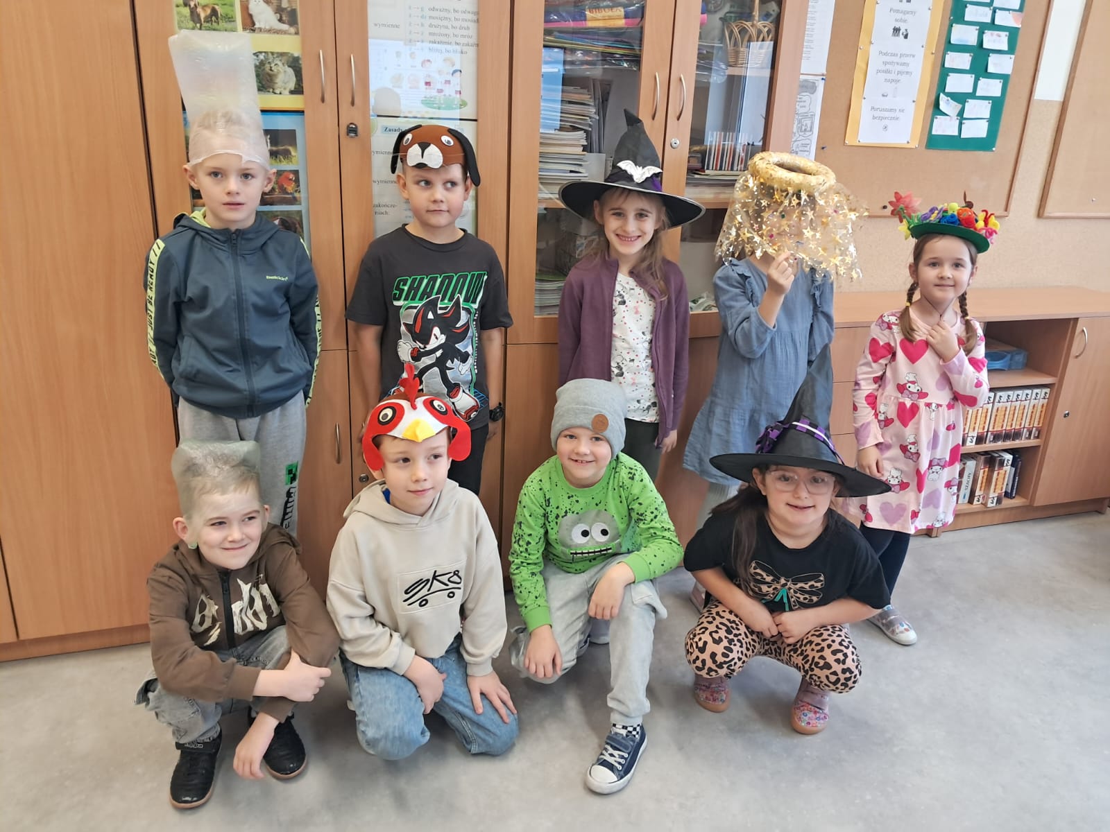 Na szkolnych korytarzach królowały kapelusze wróżek i czarodziejów, a nawet kreatywne projekty wykonane własnoręcznie. Pomysłowość uczestników nie miała granic — pojawiły się również humorystyczne nakrycia głowy.