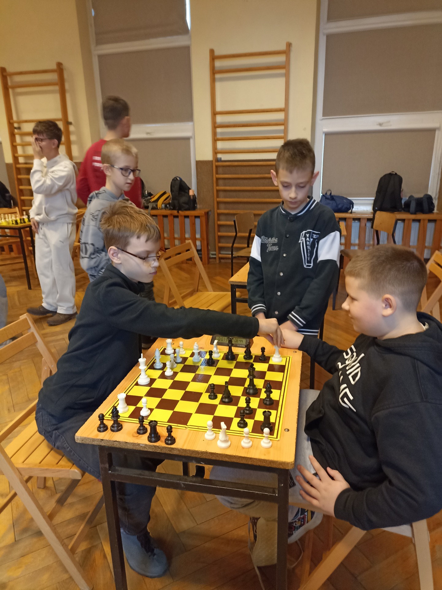 Szachy to fantastyczna gra, uczy logicznego myślenia, przewidywania oraz cierpliwości. Rywalizacja odbywała się w dwóch kategoriach wiekowych, tj. rocznik dzieci 2013 i młodsi oraz młodzież 2011-2012. W zawody przeprowadzono w formie drużynowej, partie rozgrywano według przepisów FIDE i PZSz . Nad przebiegiem turnieju czuwał profesjonalny sędzia należący do Polskiego Związku Szachowego - pan Piotr Kukiel. Po bardzo zaciętych pojedynkach SP1 zdobyła drużynowo srebrny medal w kategorii Igrzysk Młodzieży Szkolnej, a w kategorii Igrzysk Dzieci drużynowo złoty medal. Szkołę reprezentowali: Stanisław Walas 6b, Dominik Polakowski 5a,Marcel Ścibiorek 4a,Izabela Świnoga 3c, Jakub Białek 8c, Filip Żołek 8b,Jan Stasiak 8a,Beata Polakowska 7a.