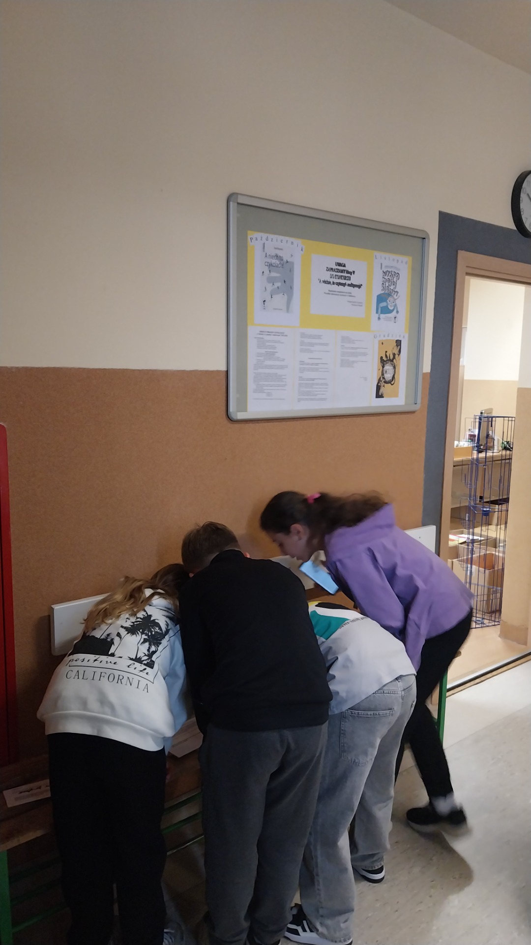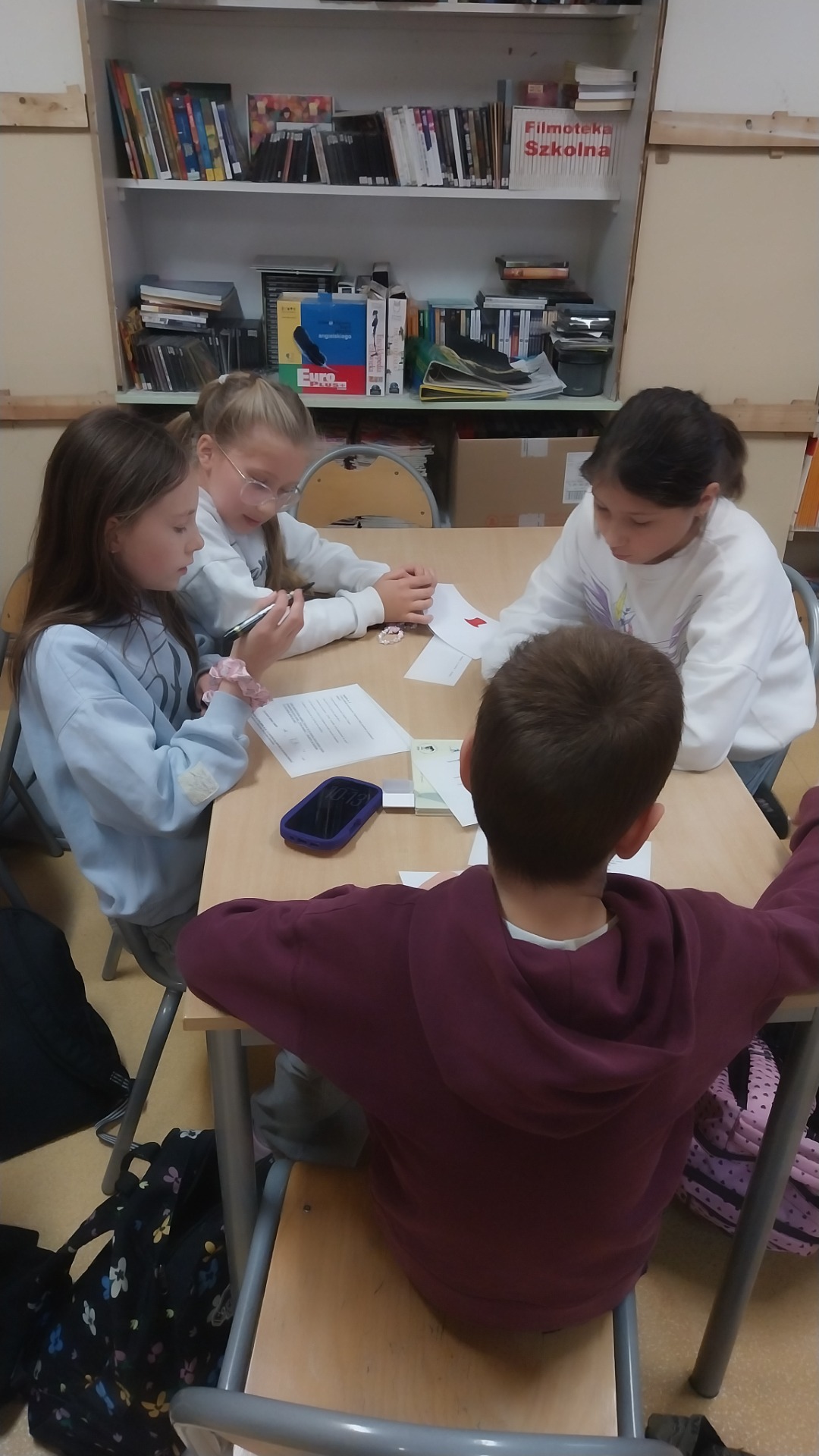 Dnia 24 października 2025 roku uczniowie klas piątych przystąpili do konkursu czytelniczego. Projekt realizowany jest zgodnie z założeniami Narodowego Programu Rozwoju Czytelnictwa. Każdy etap konkursu składa się z dwóch konkurencji. Pierwszą jest wykazanie się znajomością treści lektury, w tym przypadku był to utwór Pawła Beręsewicza „A niech to czykolada”. Test najlepiej napisała klasa 5A, na drugim miejscu uplasowała się klasa 5B, a miejsce trzecie przypadło klasie 5C. Druga część etapu dotyczyła rozwiązywania łamigłówek. Uczniowie otrzymali zagadki, które wskazywały im miejsce ukrycia zadania. Klasy musiały odnaleźć siedem poleceń, a następnie poprawnie je rozwiązać. Z zadaniem najlepiej poradzili sobie uczniowie klas 5C i 5A. Obie klasy otrzymały 3 punkty w tej konkurencji. Na drugim miejscu znalazła się klasa 5B. Spotkanie dotyczące omówienia testu i drugiej konkurencji odbyło się 4 listopada 2025 w szkolnej bibliotece. Wszystkim gratulujemy i zapraszamy do kolejnego etapu!