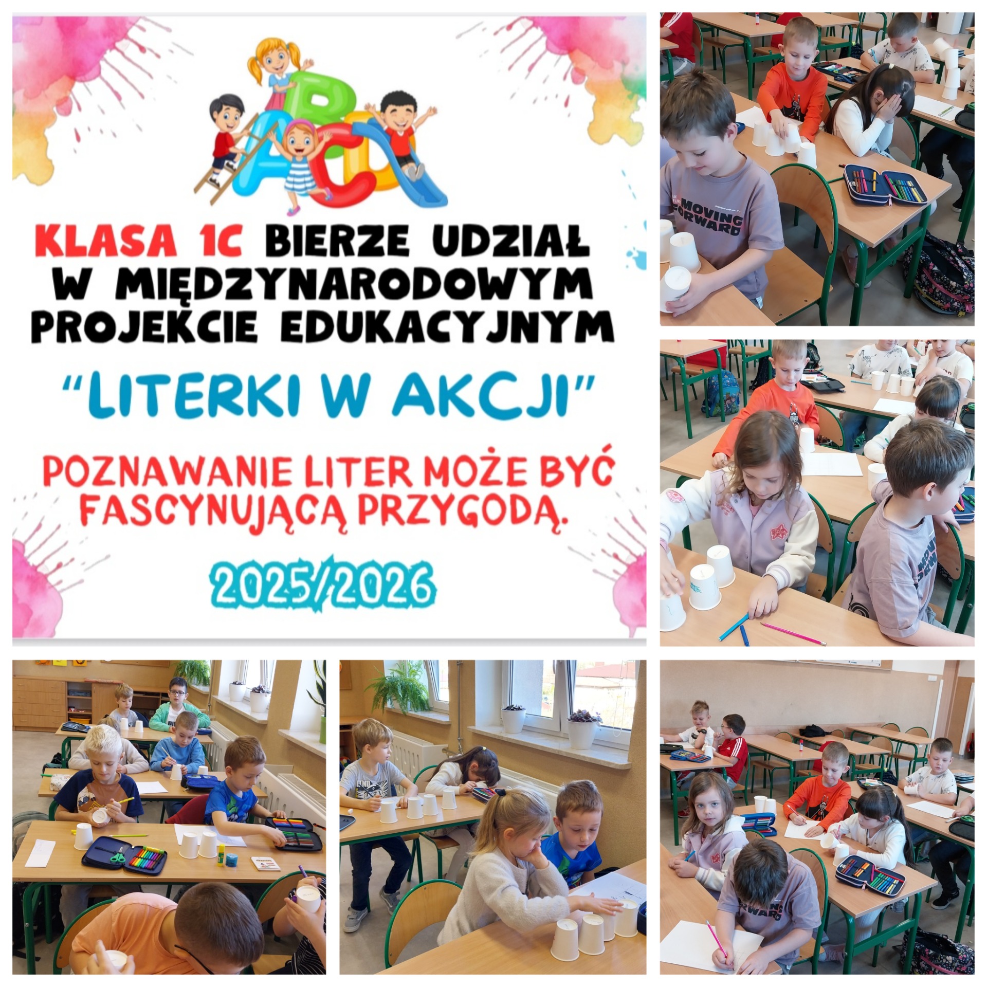 Klasa 1c bierze udział w międzynarodowym projekcie edukacyjnym „Literki w akcji”. Poprzez zabawę uczniowie utrwalają wiadomości o literach, rozwijają swoją wyobraźnię, współpracują w grupie. Od października od listopada trwała sesja jesienna, podczas której pierwszoklasiści wykonywali litery z darów jesieni, zagrali w literkowe memory, stworzyli zakręcone litery z nakrętek od słoików, odkrywali litery ukryte pod kubeczkami.